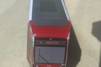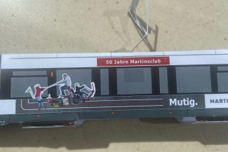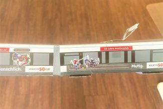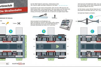 Eine Replika dieser Straßenbahn wurde außerdem auf Papierbögen zum selbst Basteln für zu Hause verteilt.